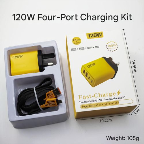 120W fast charging adapter with multiple ports (dual Type-C + dual USB) + 4-in-1 Mecha Line kit